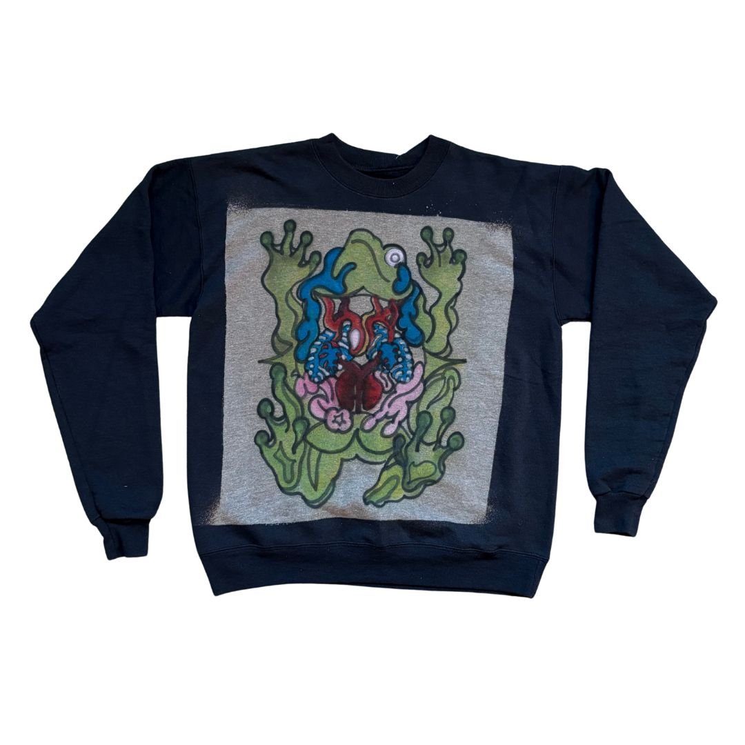 Airbrush and bleach on a black sweater. Tagged a men's small, fits true to size.