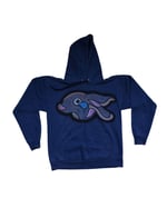 Airbrush on a vintage navy blue hoodie. Fits like a medium.