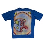 Bleach and airbrush on a blue pocket shirt. Back design only. Tagged a men's medium but fits more like a medium-large.