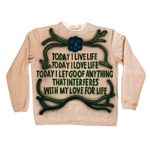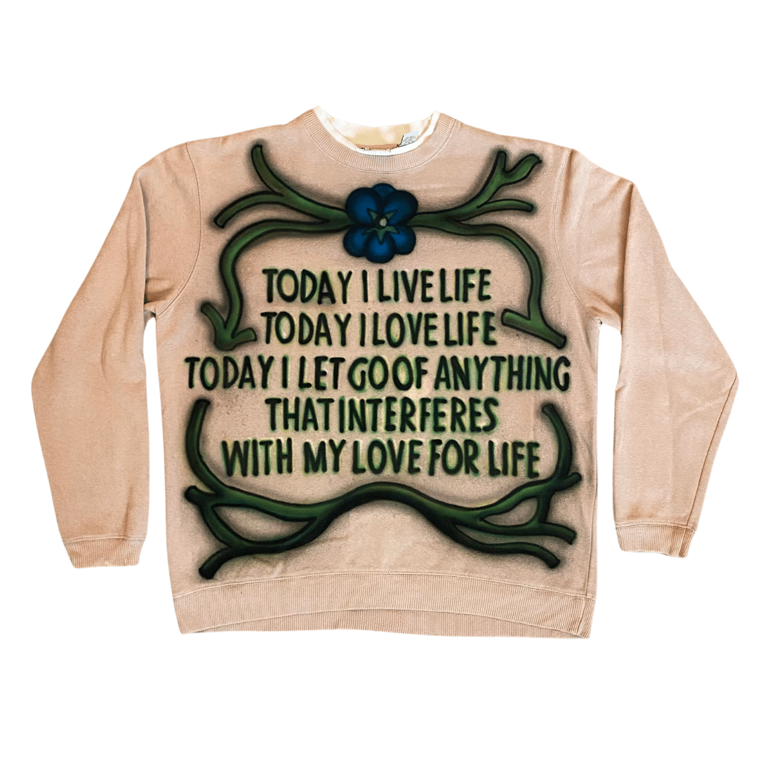 Airbrush on a vintage tan sweater. Tagged a "women's" medium fits like a standard medium.